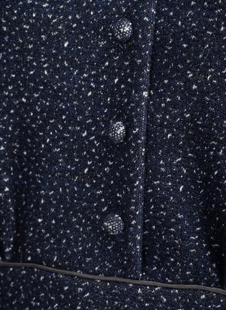 浩瀚夜空中的漫天飞雪是这款连身裙带来的生动画面……深邃的蓝底毛呢上飘撒着白雪花,有着夜空下的浪漫唯美与神秘,是每一天都美丽的maia’s lady的冬日精神。领口、腰节、袖口以优美的镶边勾勒,复古的包扣传递着用心,褶间与摆度充分利用了面料柔韧的厚度,塑造出有分量的裙摆的明暗,令每一步都摇曳生姿……丝巾、胸针、披肩都将在这深邃的飘雪夜空里大放异彩,让淑女们领略每穿每新的惊奇。