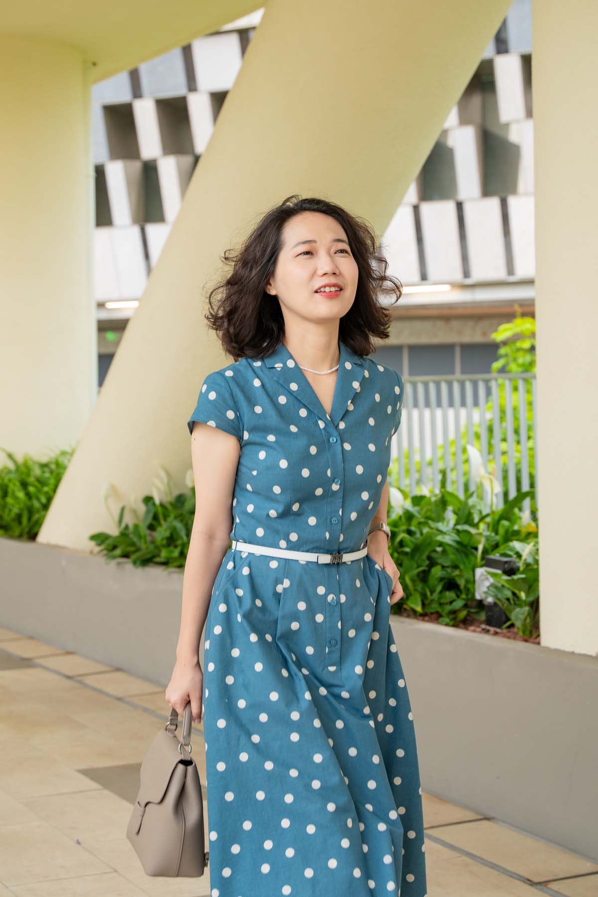 经典衬衫裙“夏日2009”,以进口棉麻混纺面料制作,带着天然材质的质朴与柔软再次回归视野,依旧让人倾心不已。优雅的平驳领有经典稳定的气质,靛蓝复古迷人的色泽,经历繁复的固色工艺,是盛夏中的清凉。白色波点铺陈其上,可爱又生动,如同跃动的音符,让人忍不住怀想时尚的黄金年代里淑女们的绰约风姿和对美好不懈地追求!经典之美总在激励我们要永远与美善同行,成就最美好的自己……