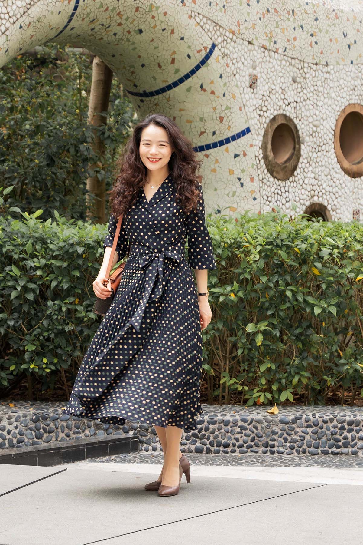 “星光秘语”有一股雅致复古的气息迎面而来,让人久久难忘……是它的黄绿波点在压褶间的起伏,荡起的层层涟漪;是它复古迷人的色调,沉静又活泼,仿佛来自久远的星光在与今日的你温情交流;是它经典裹身裙的柔情浪漫,赋予优雅时尚无穷的想象;是压褶工艺在裹身裙上的巧妙运用,动静之中,足见淑女曼妙身姿与婀娜美态……它是优雅的,内敛的,复古而摩登的,充满轻扬的活力和自信迷人的风采 ,是淑女经典衣橱中可与时光同在的又一浪漫收藏。