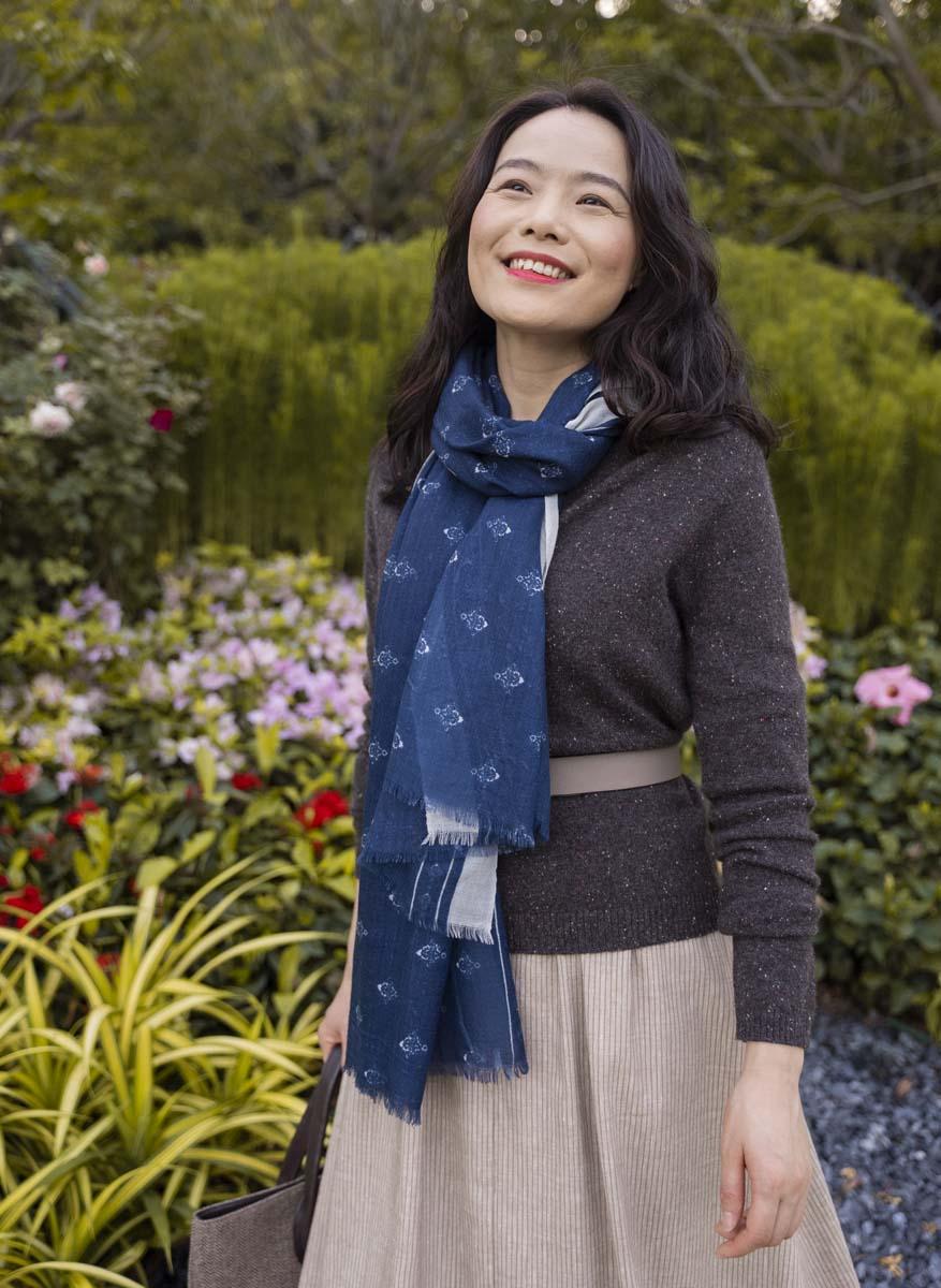 此款围巾选用高品质的羊毛面料制作而成,轻盈而温暖的质地深得人心。单品铺满着靛蓝色和白色的大马士革图案印花,灵感源于欧洲装饰艺术风格,极富精致典雅的韵味,并有朦胧的美感。纤细的毛边设计则凸显出单品薄纱般的质感。建议将其随性地搭在T恤和精裁外套之外,在任何季节里都能为造型增添一抹别致。