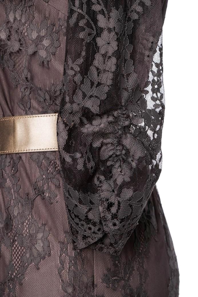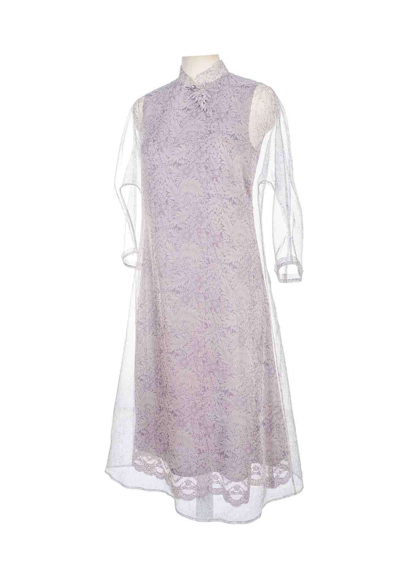 这款简洁却很有设计感的纯羊毛连身裙,采用了无腰线的设计,再配上疏朗有致的内工字褶伞型裙摆,自有一种张驰有度的美感;尤其是领口处镶拼的那一片弧形花边,恰如一份精致优美的心意——那是柯丽的告白:黑夜越深沉,真理的话语就会越明亮、越真实、越美丽…… |