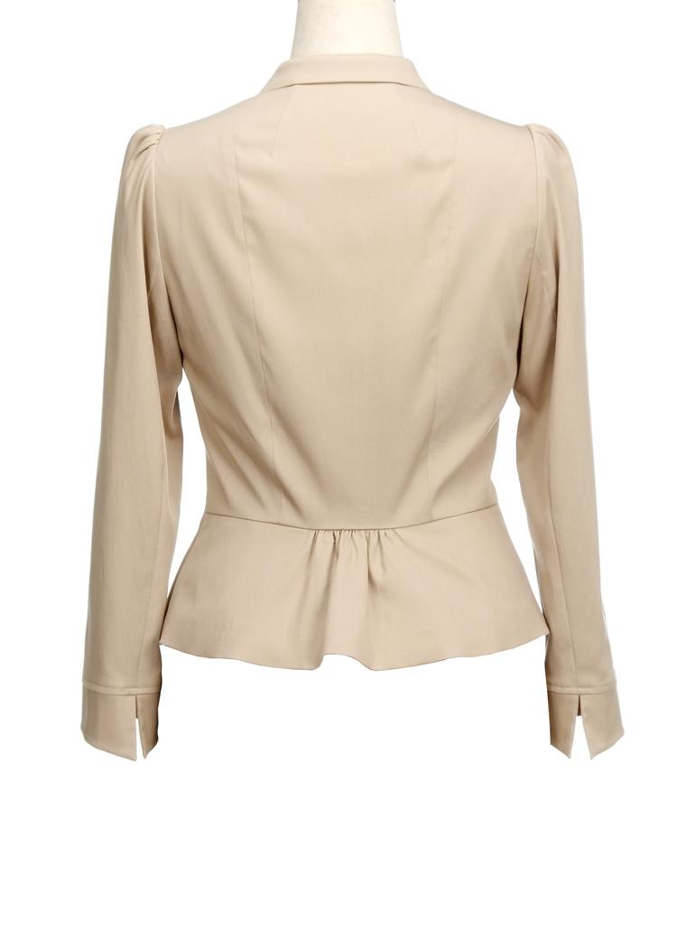 这款酒红色的jacket,体现了“迪奥式”的经典韵味——“new look”的美丽廓型、圆润的青果领、花瓣型的口袋设计,以及金属质感的圆鼓纽扣,充满着曼妙动人的女性魅力……此款jacket既可搭配同期出品的同名半裙,亦可与其他maia's半裙进行优雅组合。 |