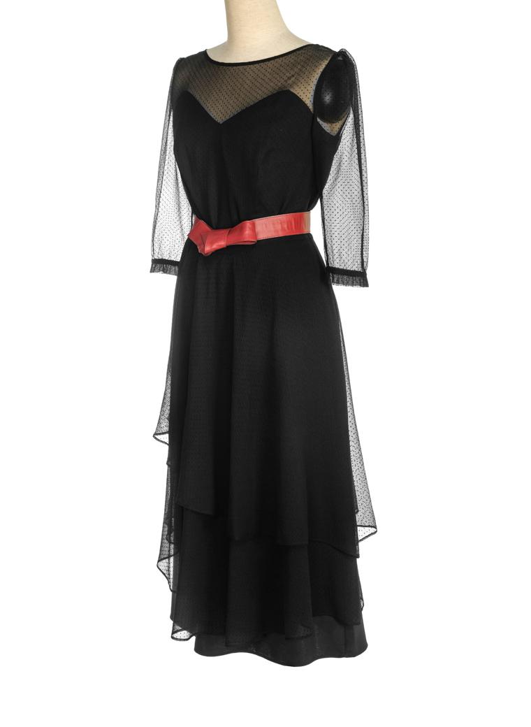 影影绰绰的黑色小波点,似点点香露印衬在静静的夜幕上……这款真丝顺纡材质的薄纱礼服,透过许多耐人寻味的细节,体现出高贵华美的设计感——在艺术与时尚的沙龙里,一位安静从容的淑女,总是会带来“静夜花开”一般的优雅魅力、艺术气息…… |