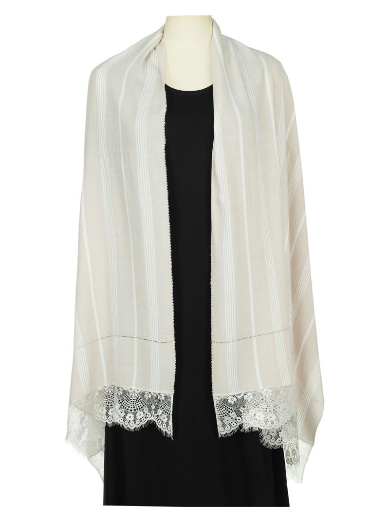 冉冉上升的光,总是经历了重重黑暗、层层乌云的阻挡,才会发出霞光万道的光彩……那穿越黑暗的晨曦,就是永不落空的盼望——人生的路上,即使遭遇到最艰难的时刻,但要坚信,一定会有希望之光等待着照亮前方…… 这是一款适合夏日的围巾——亚麻与人棉交织着半透明的质感,清爽的浅卡其底色上印衬着白色的条纹,再配上精美的宽边蕾丝,仿佛是美丽的晨曦破晓而来……让我们迎着第一缕阳光翩翩起舞吧——健康的生命,就是向阳而生的生命!
