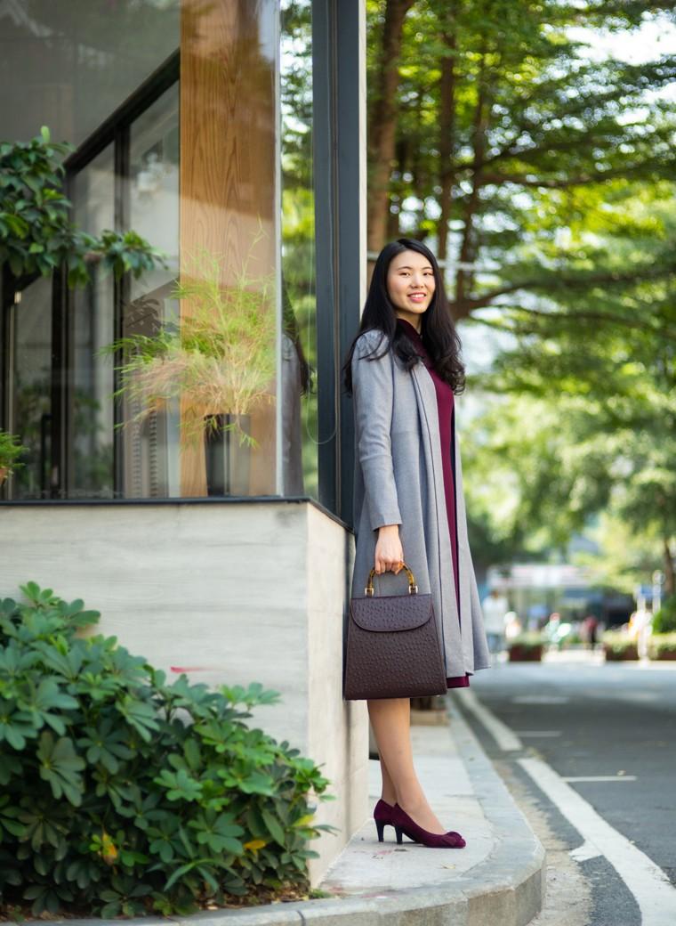 这款旗袍的设计传统却不古板,有着宜古宜今的诗意之美——古雅的褐色格纹、别致的异形领、花型的手工盘扣,以及袖口做三角形的拼接小暗扣设计,仿佛有浓浓的书香气息扑面而来——“爱读诗篇的女子”,你的美润物无声,却有着耐人寻味的无穷魅力…… |