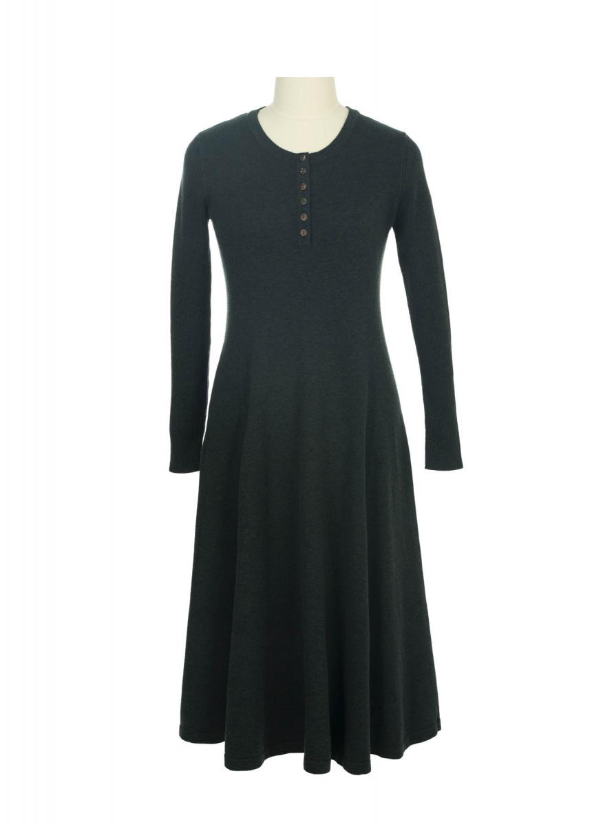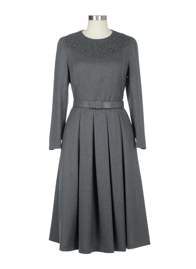 这款简洁却很有设计感的纯羊毛连身裙,采用了无腰线的设计,再配上疏朗有致的内工字褶伞型裙摆,自有一种张驰有度的美感;尤其是领口处镶拼的那一片弧形花边,恰如一份精致优美的心意——那是柯丽的告白:黑夜越深沉,真理的话语就会越明亮、越真实、越美丽…… |