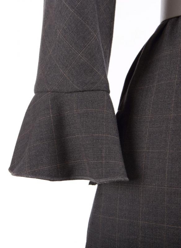 | 她承担着时代赋予的重任,良好的教养赐予她高贵的力量,让她赢得全世界的礼遇与赞美……灰色细格子是职场女性所向披靡的服饰语言,而荷叶“公主边”更为神奇的“魔术裹身裙”加添了一抹生动的女人味。 |