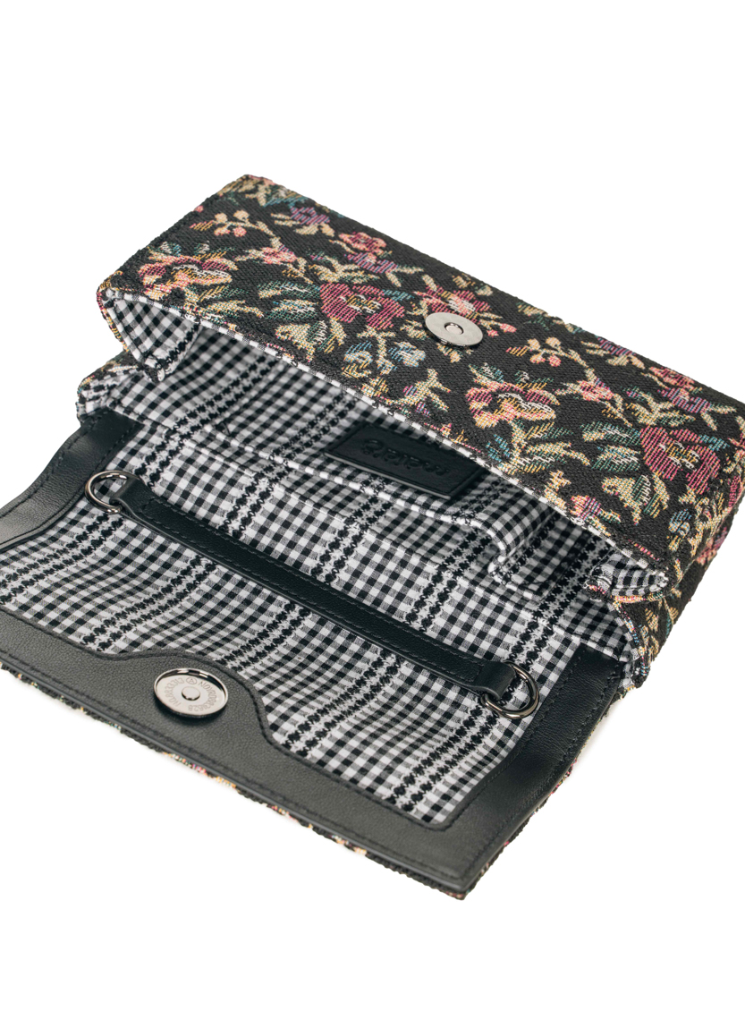 maia's经典之作“无声的焦点”再次锦绣回归!蕴含古色古香花朵图案的面料,其独特织造工艺形成的肌理,展现出迷人的古朴韵味。小巧的长方形造型,背带链条与牛皮拼接的简约设计,无论是手拿、拎提还是肩挎,皆令人爱不释手。亲爱的淑女们,让这款包包成为我们生活中那些充满美丽遐想、动人瞬间的“焦点”吧。