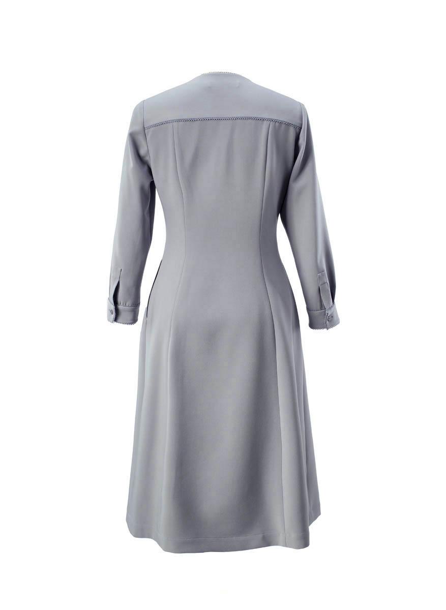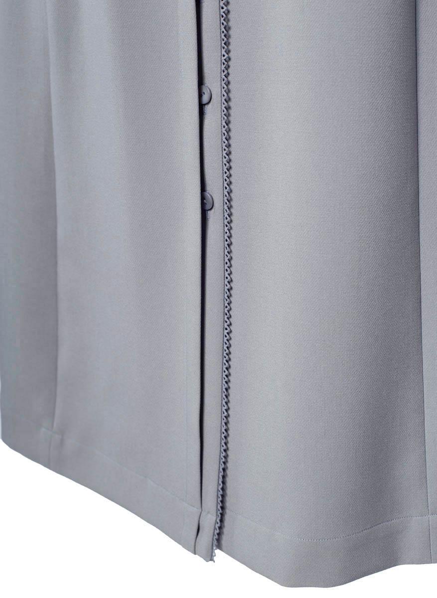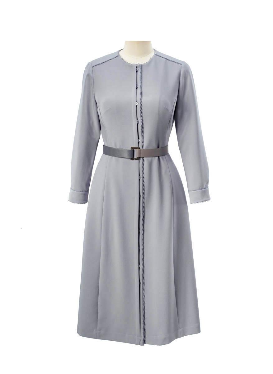 她的每一处细节仿佛都在告诉我们,美好的日子就是如此闲适典雅、安静迷人……柔软、富有弹性的面料,端丽大方的款型,小圆领与颇具立体美感的巧妙门襟设计及各处点缀的花边,精致的细节令人一见倾心,更烘托出浓浓的温婉淑女气息。无腰线设计适合不同身形的淑女,敞开衣襟作为风衣亦是一道温柔清新又别致的风景。
