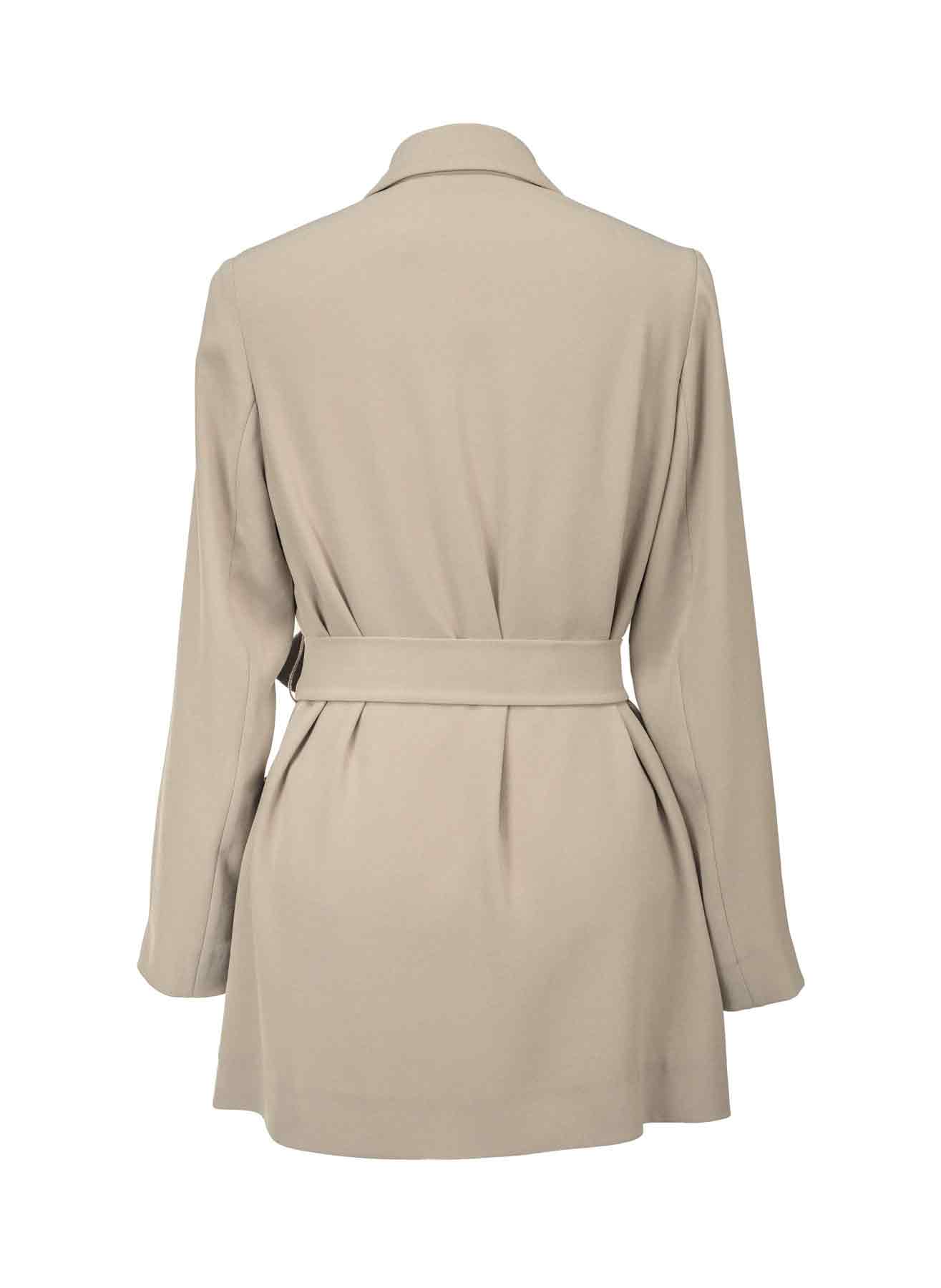 光阴里美好的故事散落于人生各处,它轻柔如风,给你阵阵抚慰……玛亚系列这件轻盈的系带Jacket恰似一阵温柔,给予身心体贴的呵护,令你久久地体会着这份光阴中不消散的深情慰藉。它有Jacket帅气的领型样式,内在却精致细腻,是出席不同场合都很体面的单品。垂坠的面料顺滑飘逸,打消起皱的烦恼,留下舒朗的感受。留有容量的版型颇具大气之感,是松弛感在着装中的表达,穿得留有余地才能有轻松自在的表现。衣身两侧的贴袋设计同样容量有余,让双手有处安放,你可以将随身配有的腰带系结于前,增加形象里的利落精致,也可以敞开穿着享受如风的自在,体会生命在安歇中得力量的美好祝福……
