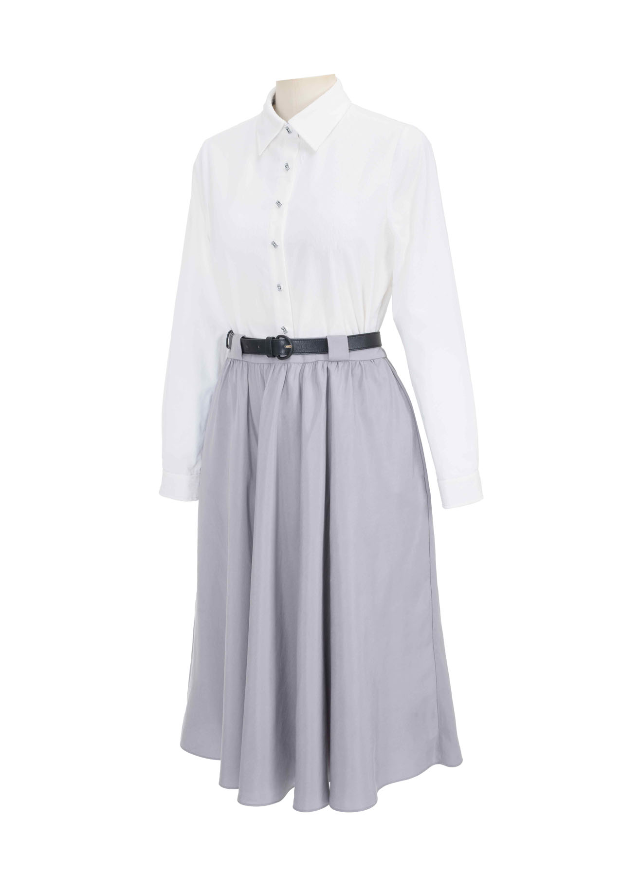想要在冬日穿出轻盈感,白色是改变形象的魔术师。轻盈圣洁的白在冬日围裹的厚实之中哪怕只是微微一露,都会为形象“减重”,增加呼吸之感,呈现出天然去雕饰的轻盈效果。白色衬衫选用微弹灯芯绒面料,棉和天然铜氨纤维混纺带来绵软质地和温暖舒适质感,在保持柔软亲肤的同时,更添光泽感、耐磨性、不易皱的特性;有动感的线条图案圆扣,以及领座与袖口内的碎花点缀,都是这款白衬衫的细节之美……
