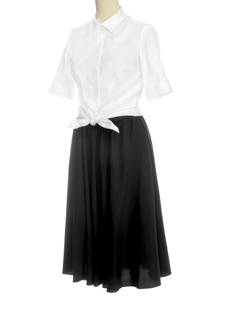 什么是“罗马假日”的绝佳搭配?在夏季,答案无疑就是“同学会”,这是经典与经典的对话!一件纯粹的黑、白衬衣,是基础中的不凡,是得体中的精彩,让穿着的淑女脱颖而出!当简单的黑、白衬衣又是短袖的时候,往往会显得普通;而诞生于2014年的“同学会”,是maia's以最纯粹的方式让简单衬衫展现出精致的优雅之感的典范之作,高品质的穿着效果和实穿率使之经久不衰。优雅的修长、经典的款型、优良的质地,是夏日必备的百搭单品。