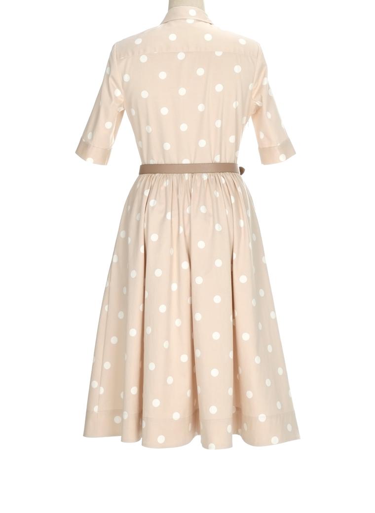 | 清香如茵的日子,款款而行的倩影,一个沉静安然的淑女,没有锐气、毫不张扬,沉浸在“点点经典”的悠香里……这款衬衫裙结合了“同学会”和“罗马假日”的经典版型,并透过温雅知性的色彩、浪漫文艺的大波点图案,体现出令人难忘的淑女气质——平静的安然稳固,自在的赏心悦目……(有浅蓝色、杏色供选) |