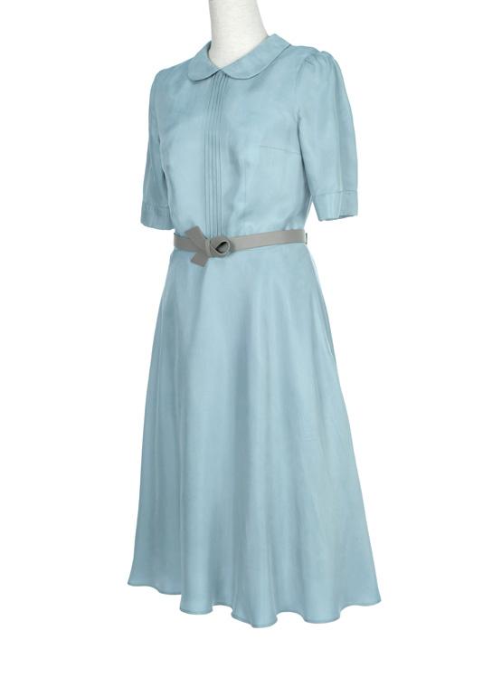 “彼得潘式”的圆领、清新的浅蓝色、复古的细褶、俏皮的泡泡袖,都在彰显着淑女纯净、天真的气质——这款铜氨丝质地的连身裙,体现着maia’s的美好祝愿——愿纯真的“幸福笑靥”与淑女一生相伴…… |
