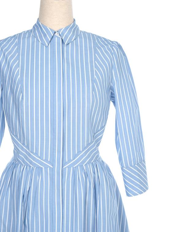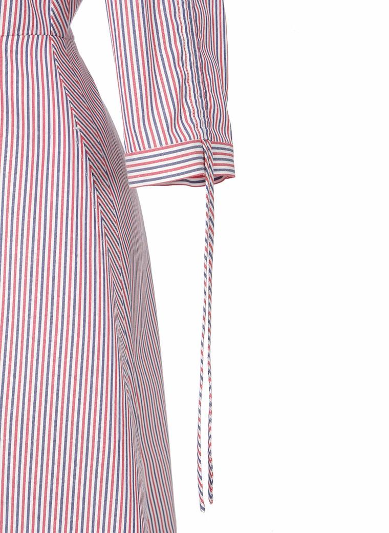 红蓝相间的细细条纹,透过一系列细腻生动的细节设计,表达出细香微度般的艺术美感——这一款精致灵动的衬衫裙,精彩地传递出有礼有节的淑女魅力…… |
