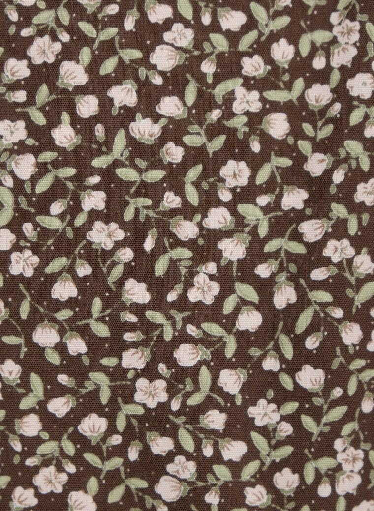 咖啡底色的小碎花,似丰饶的大地上盛开的小小花朵,因对自我的接纳而拥有强大的生命力;经典的女版衬衫领、肩部与袖口抽褶的呼应,都为这款经典的衬衫裙添加了一份耐人寻味的生动——那是“我自香如故”的馨香,恬静而欢悦、深沉而持久…… |